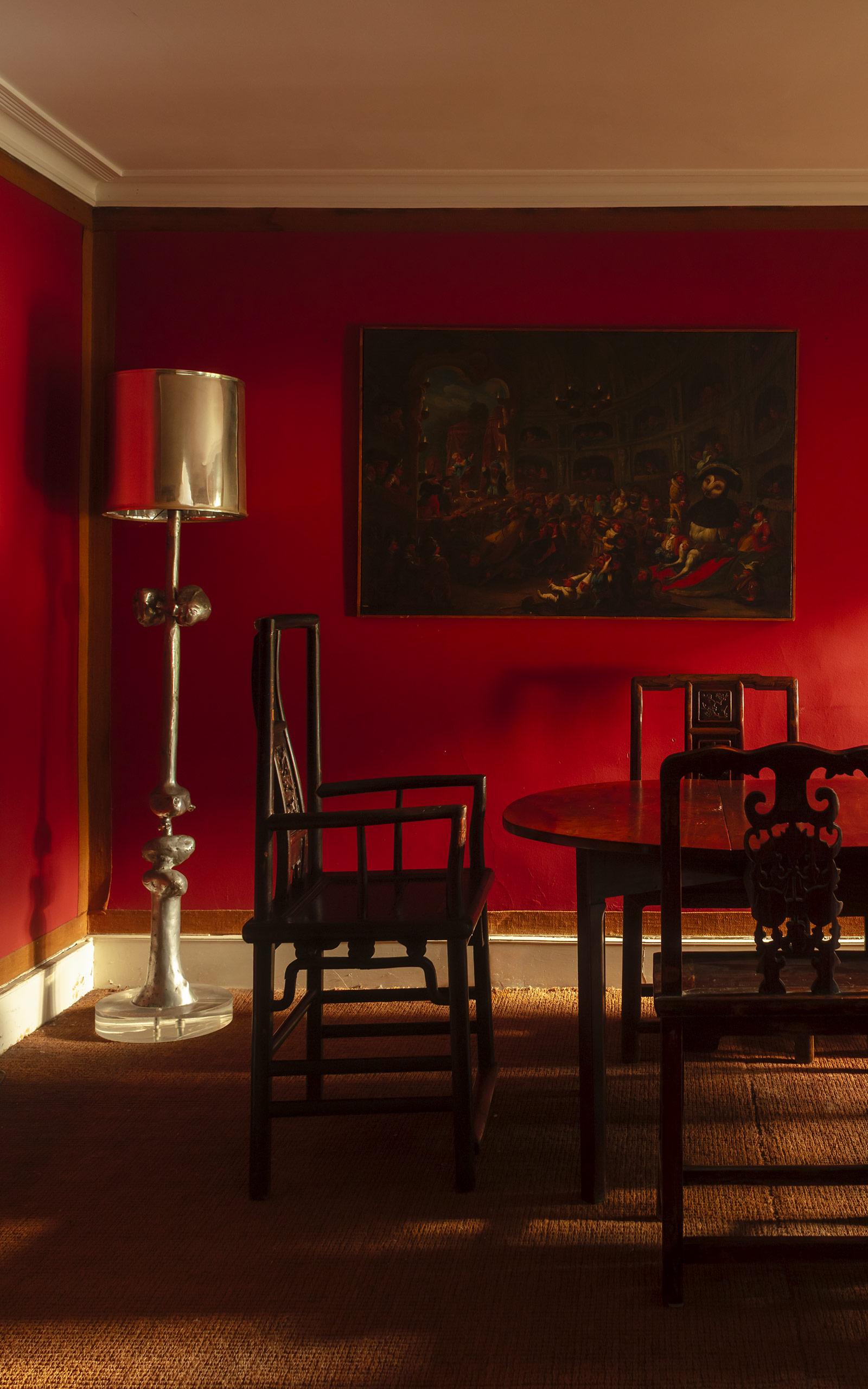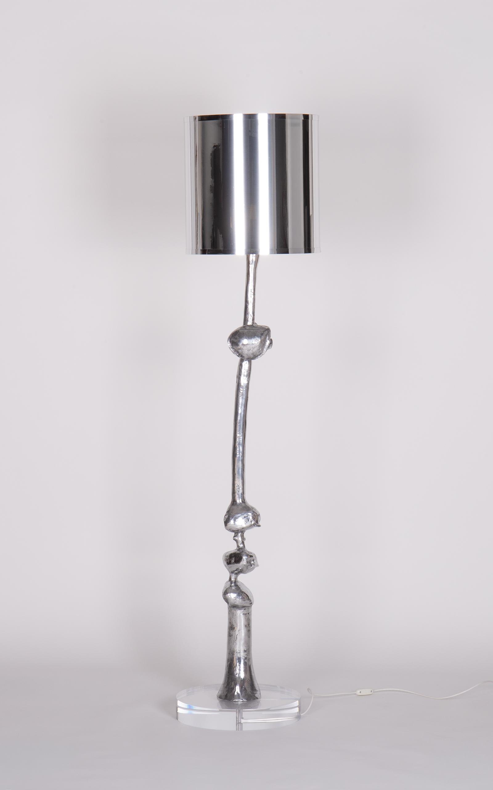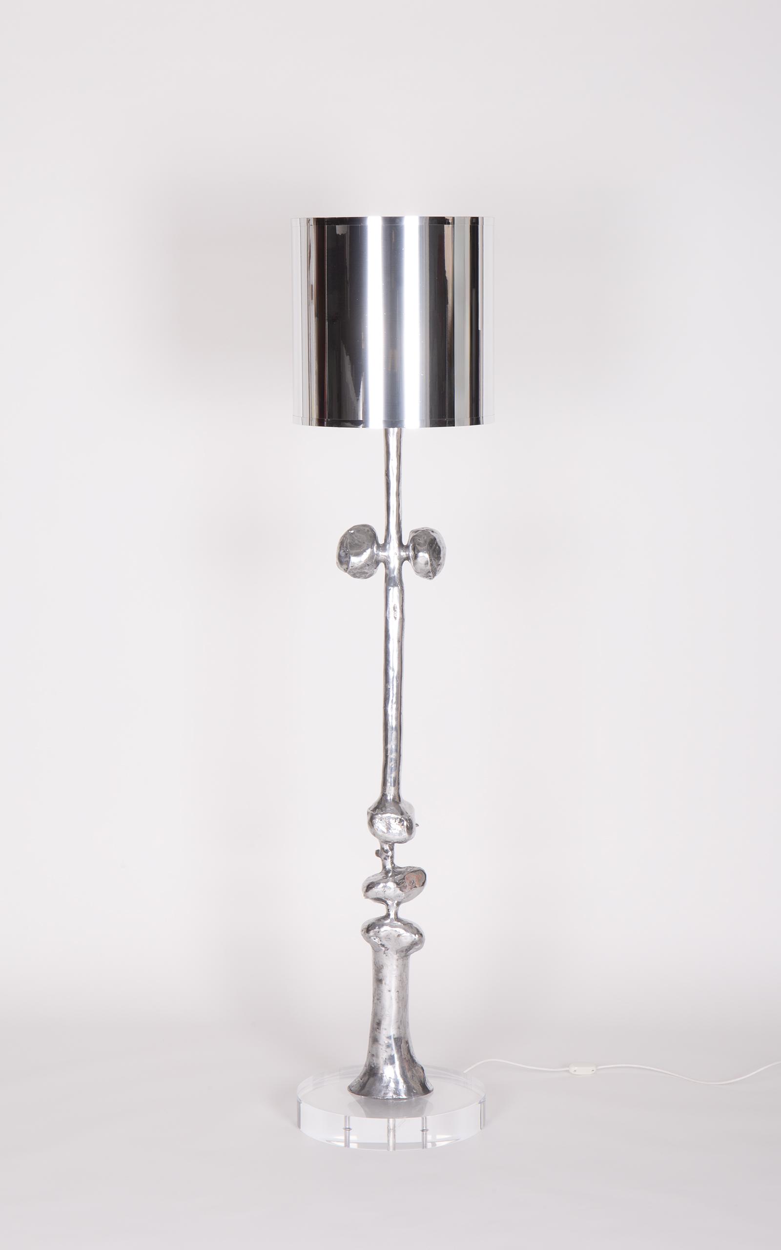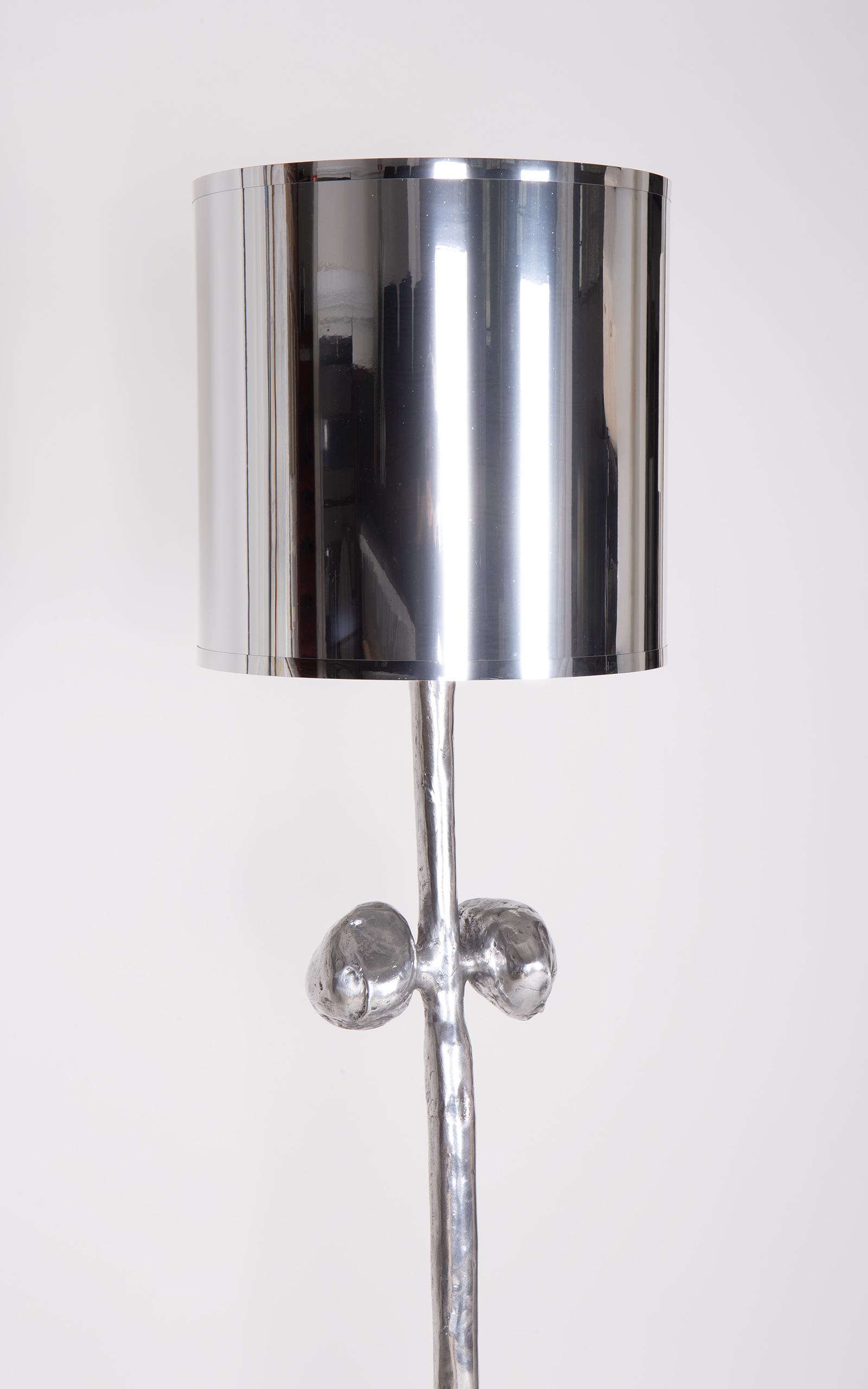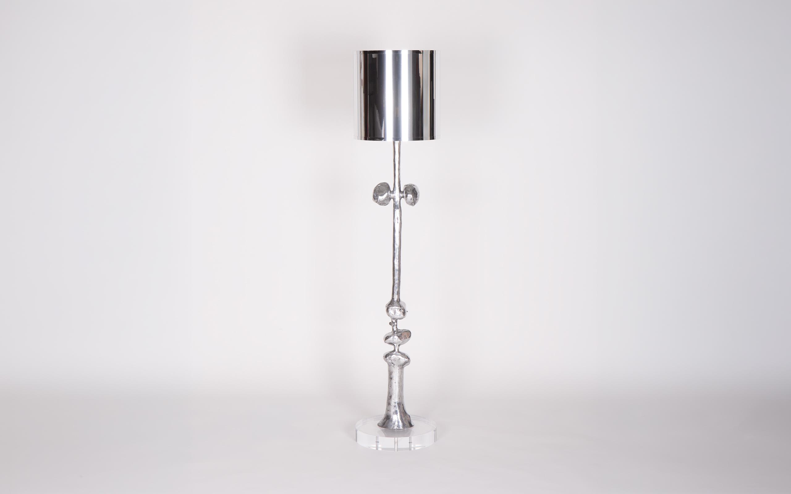 Nata all’inizio degli anni Settanta dalla poliedrica immaginazione dell’artista surrealista Roberto Matta e pensata per l’intimità della sua casa, Mezzanotte è una lampada da terra in alluminio con paralume in pvc e base in plexiglass, una scultura di luce che illumina la tua stanza.