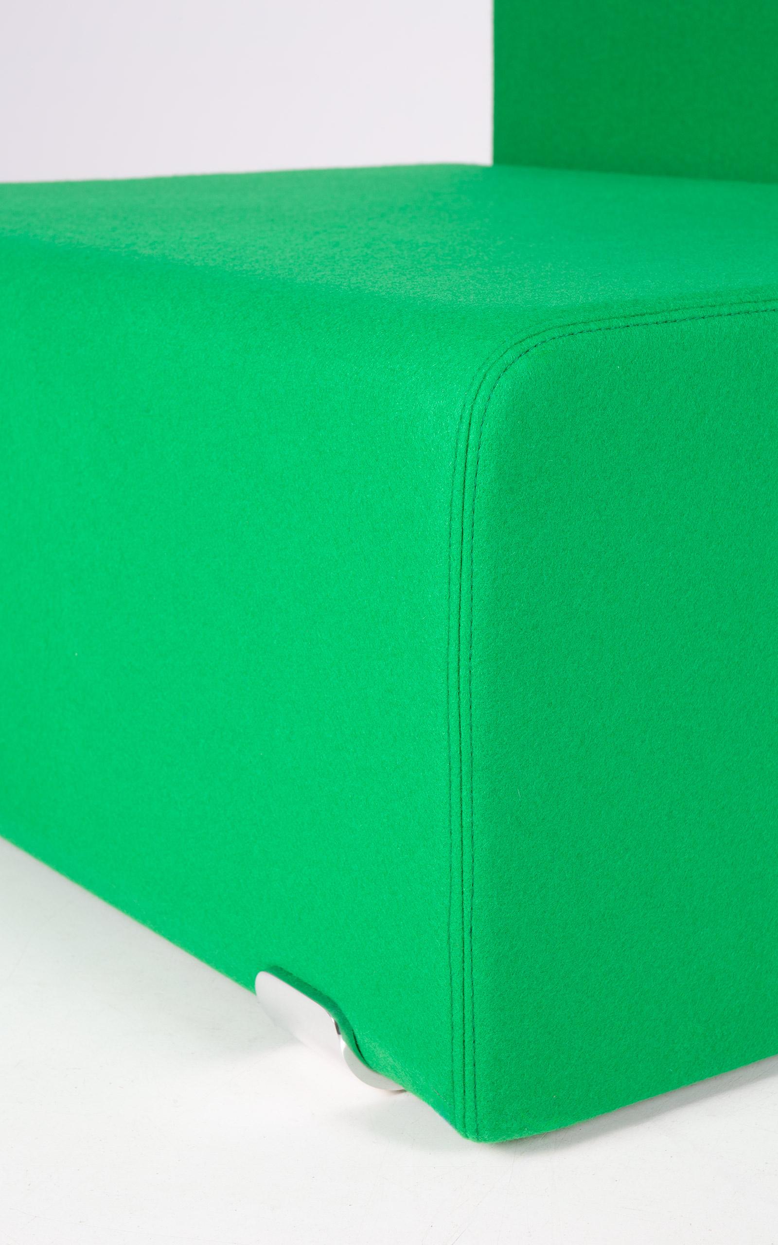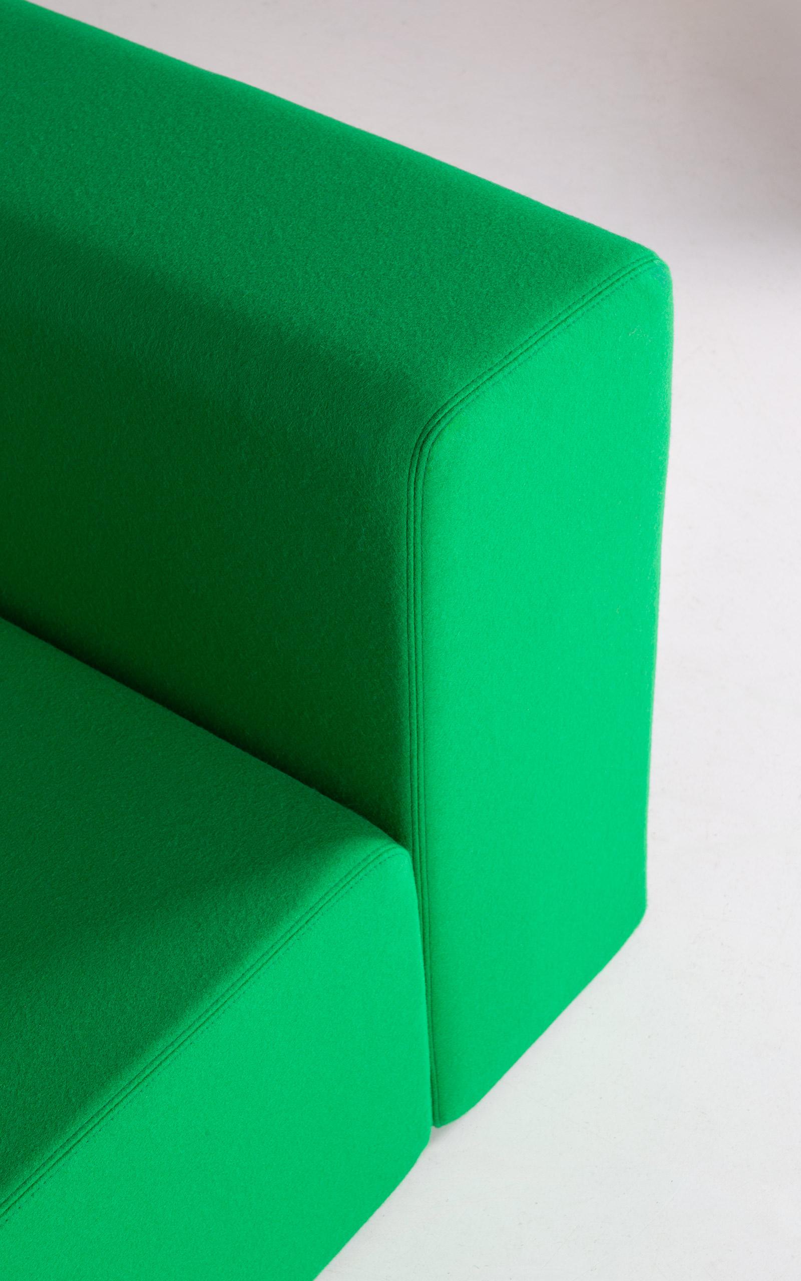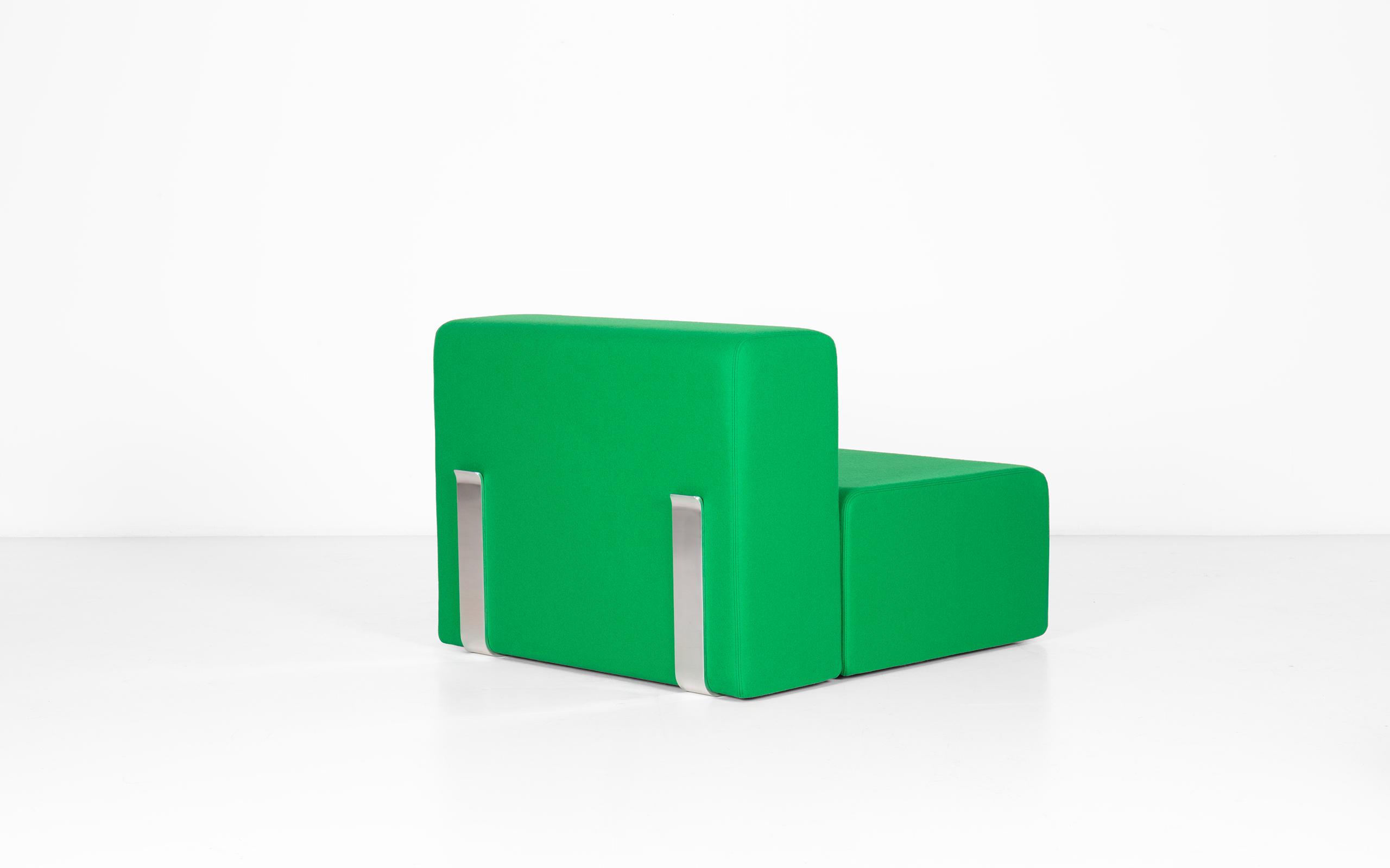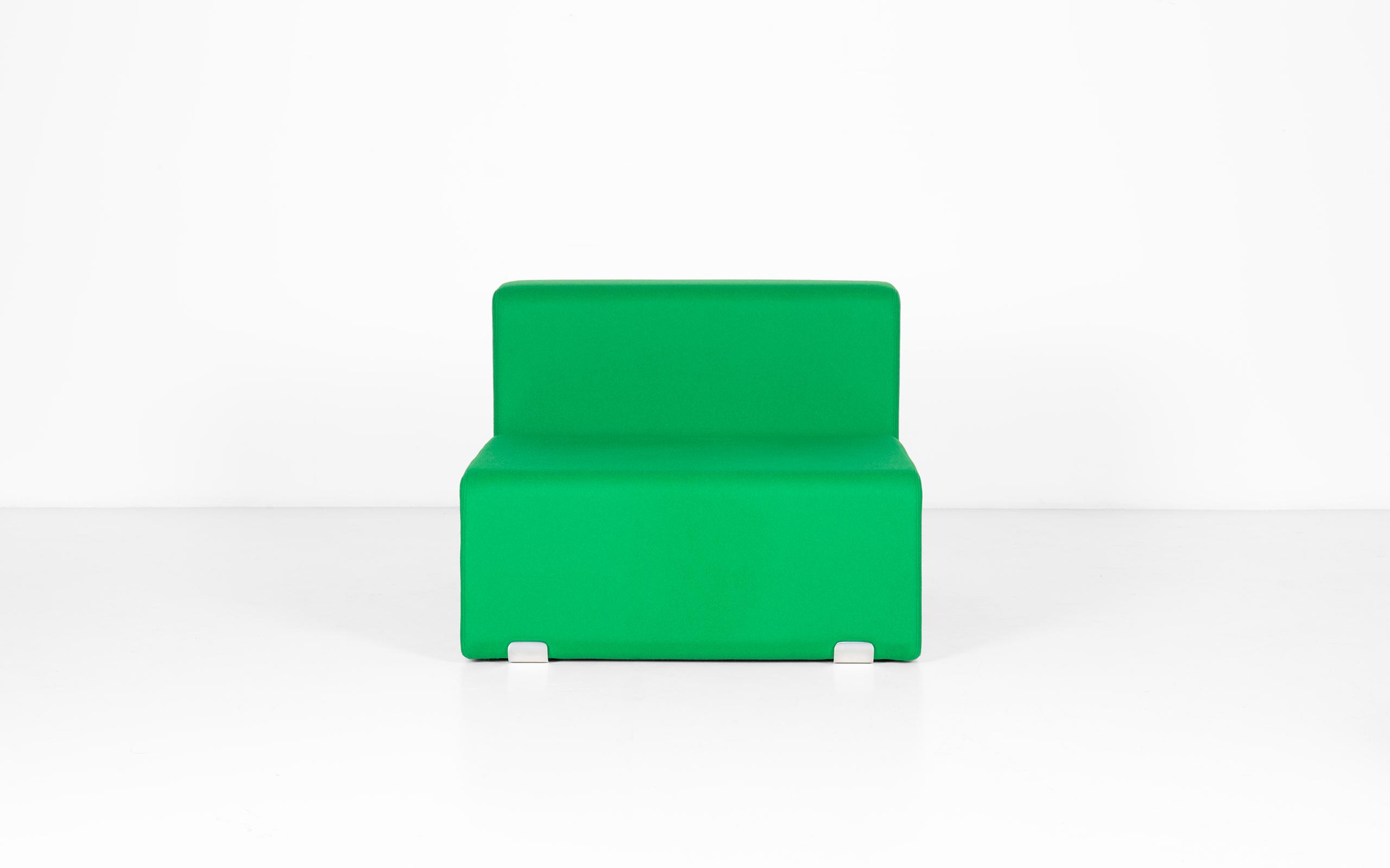 Questo nuovo tipo di sistema modulare, basato su un’ infinità di possibili combinazioni nello spazio, sfuggiva alla tradizionale definizione di arredo e si basava su grandi blocchi di poliuretano sagomati sostenuti da staffe in alluminio.